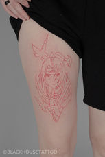 Linework tetování se charakterizuje především svým důrazem na čistotu, konzistenci a preciznost linií. V tomto stylu se nepoužívají stíny nebo barvy pro vytvoření hloubky či textury, ale spíše kontrast mezi černou (nebo jinou základní barvou) a neobarvenou kůží. Klíčem k úspěšnému Linework tetování je konzistentní tloušťka čáry a plynulost tahu, což vyžaduje pevnou ruku a hluboké porozumění k tetovací technice. Je to v podstatě hra kontrastů, kde jednoduchost designu často vede k výraznému vizuálnímu dopadu. Přestože se může zdát, že Linework je jednoduchý a přímočarý, ve skutečnosti může být jeden z nejnáročnějších stylů pro tetovací umělce. Výzvou je zajistit, aby každá linie byla dokonale čistá a bez skvrn, což může být zvláště náročné u složitějších a detailnějších designů. Tento styl je také populární pro jeho schopnost vydržet časem, protože čisté linie mají tendenci stárnout dobře, pokud jsou správně provedeny.
